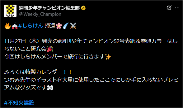 NEWS 【ホロライブ】しらけん表紙巻頭カラーのチャンピオン発売です!