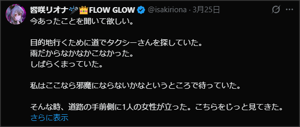 — 響咲リオナ🎤👑FLOW GLOW (@isakiriona) March 25, 2026