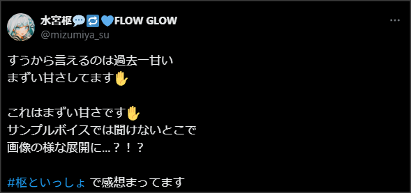 画像の様な展開に…?!?#枢といっしょ で感想まってます https://t.co/RaAWuZLWwE pic.twitter.com/UO9Vweo7MY— 水宮枢💬🔁💙FLOW GLOW (@mizumiya_su) May 8, 2025