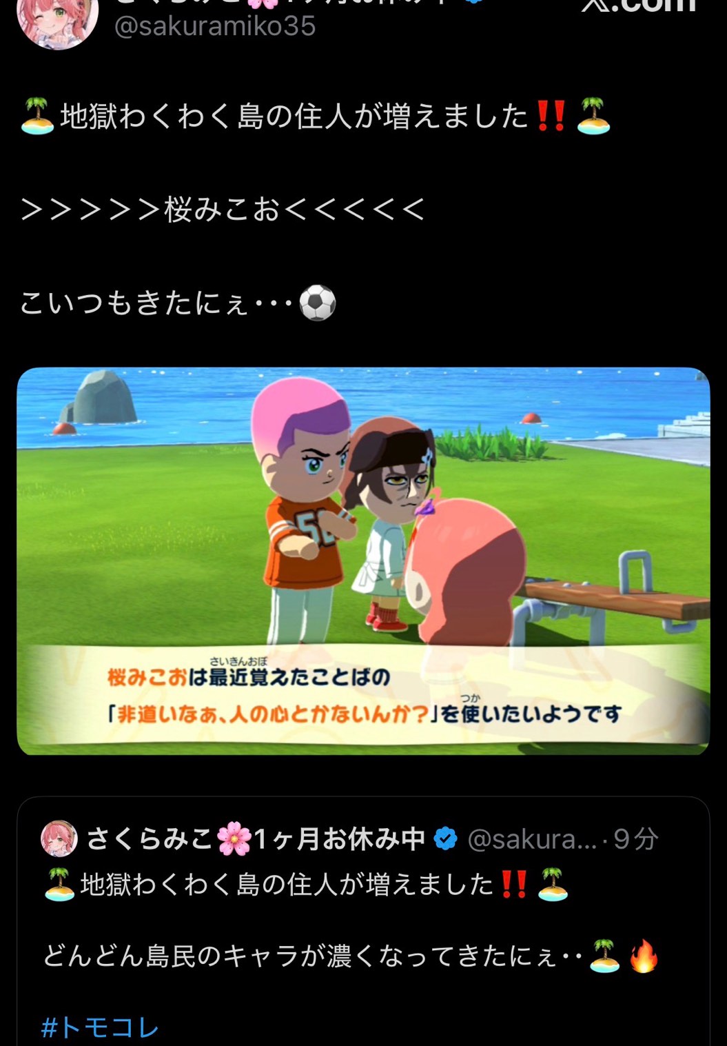 どんどん島民のキャラが濃くなってきたにぇ・・🏝🔥#トモコレ pic.twitter.com/j0E5KSyWIs