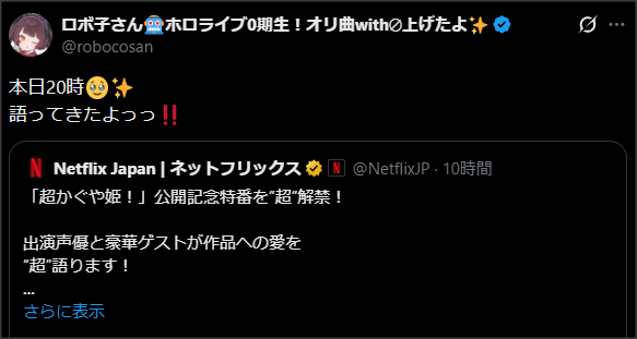 語ってきたよっっ‼️ https://t.co/oXgezmDPCQ— ロボ子さん🤖ホロライブ0期生!オリ曲with∅上げたよ✨ (@robocosan) January 31, 2026