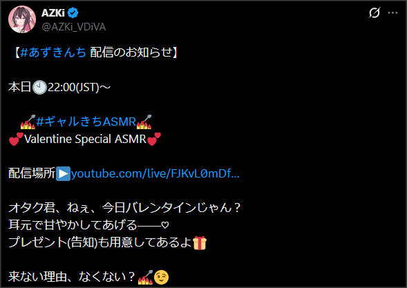 — AZKi (@AZKi_VDiVA) February 14, 2026