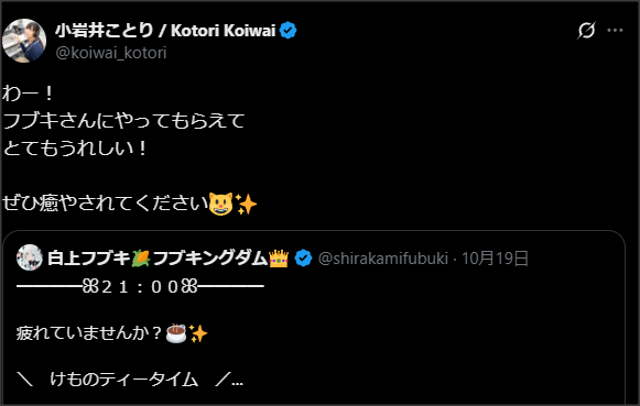 — 小岩井ことり / Kotori Koiwai (@koiwai_kotori) October 19, 2025