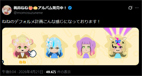 — 桃鈴ねね🍑🥟アルバム発売中! (@momosuzunene) April 21, 2026