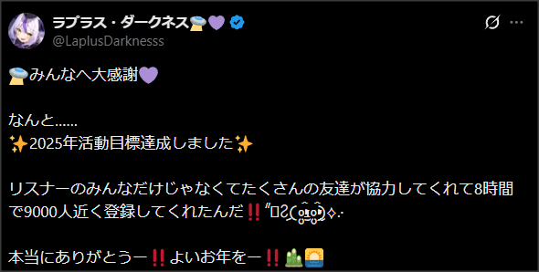 — ラプラス・ダークネス🛸💜 (@LaplusDarknesss) December 30, 2025