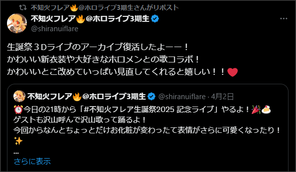 — ホロライブプロダクション【公式】 (@hololivetv) April 16, 2025