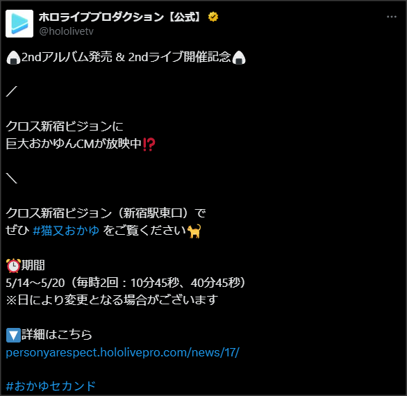 — ホロライブプロダクション【公式】 (@hololivetv) May 14, 2025