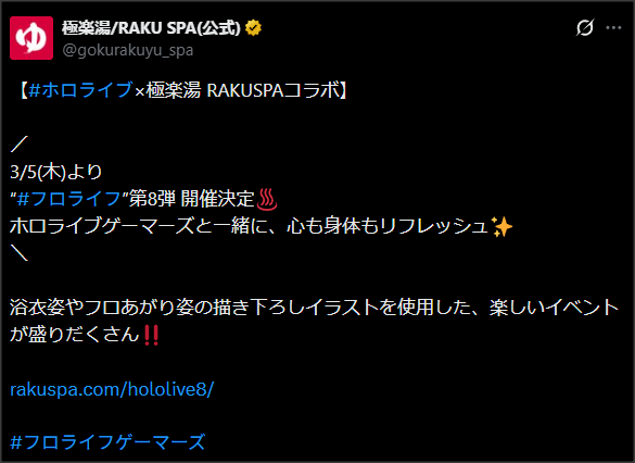 【#ホロライブ×極楽湯 RAKUSPAコラボ】