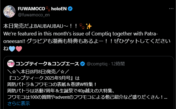 ホロライブEN 【ホロライブ】フワモコ、コンプティークにでてます!