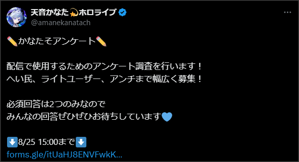 ホロライブ4期生 【ホロライブ】かなたその配信概要欄わろた